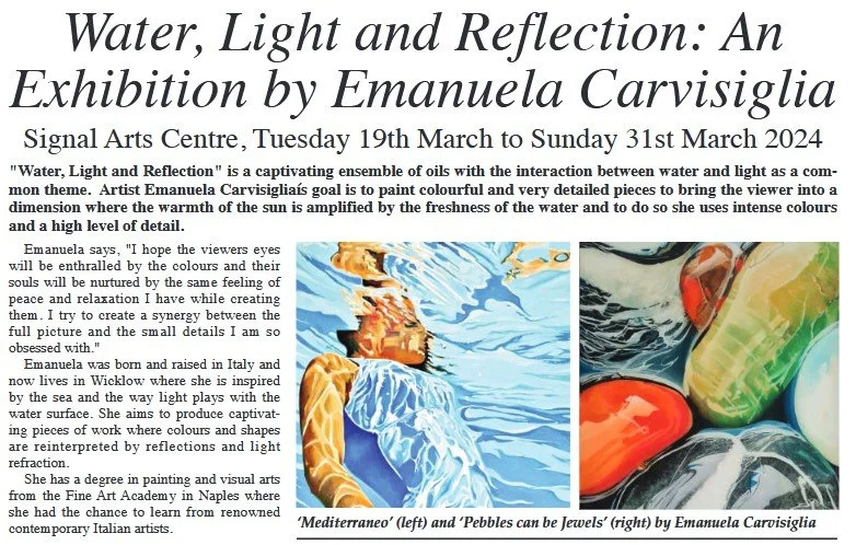 Drawing inspiration from the shimmering surface of the water, Emanuela also explores the enchanting play of light and reflection, capturing fleeting moments of tranquillity and introspection. Each painting becomes a mirror, reflecting not only the world around us but also the emotions, memories and dreams that lie beneath the surface of our consciousness, and the peaceful feeling she experiences when creating each piece.